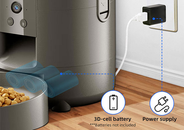 The USB adapter and battery backup ensure that even if there is a power outage, the feeder will continue to feed your pet, providing you with peace of mind when you're away.